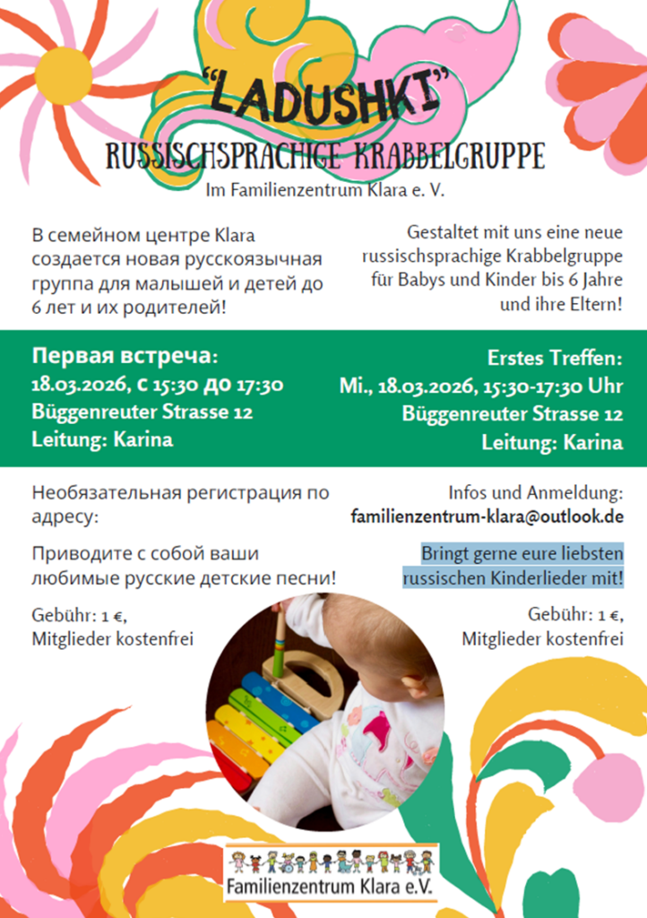 | Необязательная регистрация по адресу: familienzentrum-klara@outlook.de | Infos und Anmeldung: familienzentrum-klara@outlook.de |